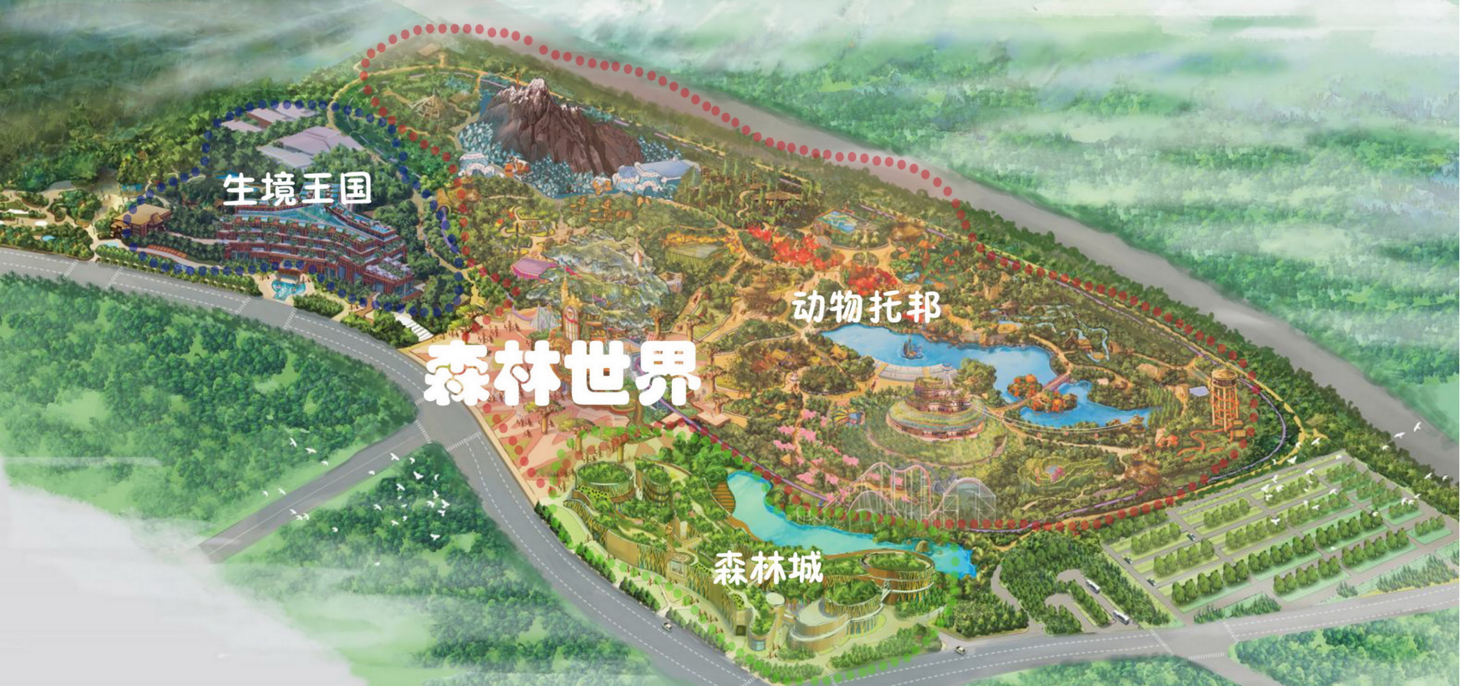森林世界位于大陽山國家森林公園區域,占地約50.4公頃,是蘇州樂園森林旅游度假區的核心歡樂板塊,將配...